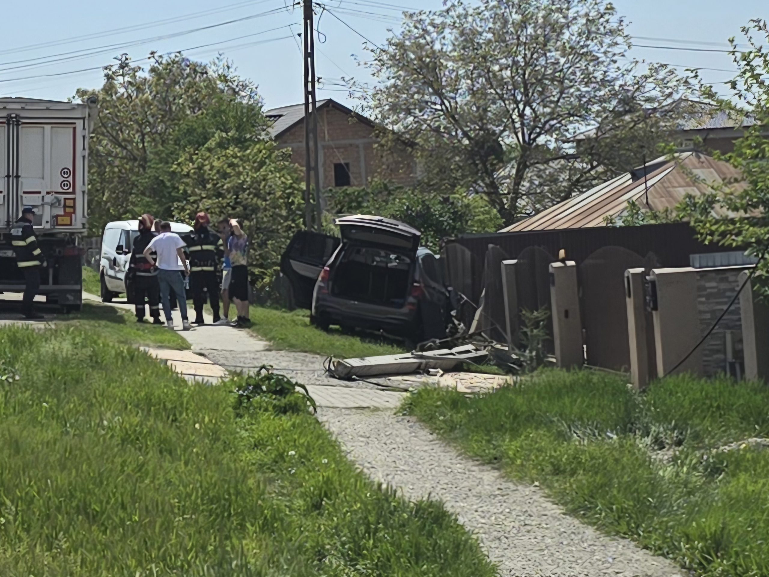 Accident rutier la intrarea în municipiul Bacău: o mașină a intrat in gardul unei case. Foto