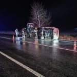 Accident rutier la Lețcani: un microbuz a intrat în coliziune cu două autoturisme. O victimă a rămas încarcerată, iar o altă persoană a fost proiectată în afara mașinii. Trei persoane aflate în microbuz sunt conștiente și s-au autoevacuat. În total, nouă persoane au fost implicate. La fața locului au intervenit echipaje TIM, ATPVM, EPA și SAJ B2. Bărbat 27 ani preluat de TIM, șofer autoturism, conștient, care a ieșit singur din mașină, policontuzionat Tcc fără Pc, plagă contuză fronto-temporala dreaptă, traumatism toraco-abdominal, traumatism gambă dreaptă, halenă alcoolică. A fost adus doar el la UPU, restul au refuzat să evaluați la spital. Șoferul din accident Tcc cu PC, Hematom epicranian parietal drept, contuzie toraco-abdominală, fractură arc posterior C12, a mers la Neurochirurgie”, a transmis prof. dr. Diana Cimpoeșu, medic șef UPU-SMURD Iași.