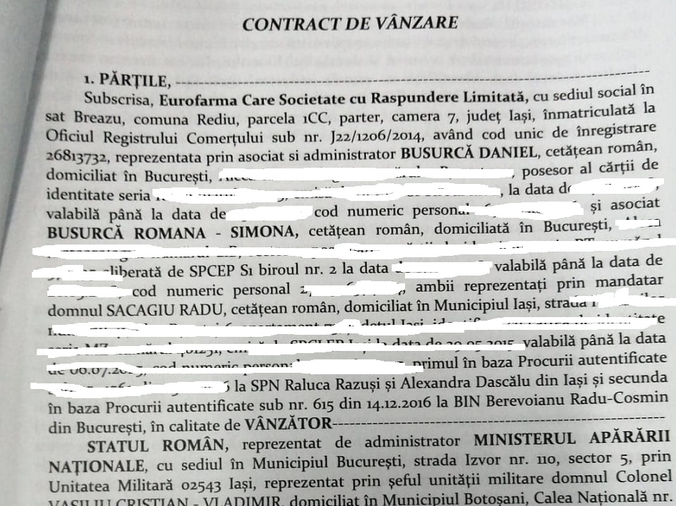 Armata a fost cel mai mare cumpărător de apartamente in acest complex imobiliar și cu toate acestea nu a beneficiat de vreo reducere de preț. Astfel, Armata a cumpărat la prețuri de 880 euro pentru un metru patrat în conditiile în care ’’dezvoltatorul’’ vindea personelor fizice cu 850 euro/mp, conform unor oferte postate pe internet. Au fost semnate trei contracte între dezvoltator, adica SC Eurofarma Care SRL, Daniel Busurcă și soția lui Simona Ramona și Ministerul Apărării prin UM 02543 Iași, reprezentată de colonel Cristian Vasiliu Vladimir. Adică, apartamentele au fost vândute fie de firmă, fie de soții Busurcă, persoane fizice.  Primul contract a fost semnat pe 22 decembrie 2016. Cu aceasta ocazie UM 02543 Iași a cumpărat 6 apartamente cu o cameră cu suprafețe cuprinse între 52 și 57 mp și 4 apartamente cu suprafețe cuprinse între 81 și 92 mp platind 2.511.767 lei adică în jur de 870 euro pe un metru pătrat. O săptamână mai devreme aceiași ‘’protagoniști’’ au semnaseră un alt contract pentru alte 10 apartamente cu 2 camere cu suprafețe cuprinse intre 40 și 60 mp platind 1.930.411,72 lei adică 717 euro/mp. Un an mai târziu, in decembrie 2017 se semnează ultimul contract pentru 6 apartamente cu două camere, cu suprafețe cuprinse intre 54 și 60 mp plătind 1.372.879 lei adica 881 euro pe mp. Să mai precizam ca toate apartamentele cumpărate de Armată sunt la demisol sau la parter și cu toate acestea nici din acest motiv statul nu a beneficiat de reducere.