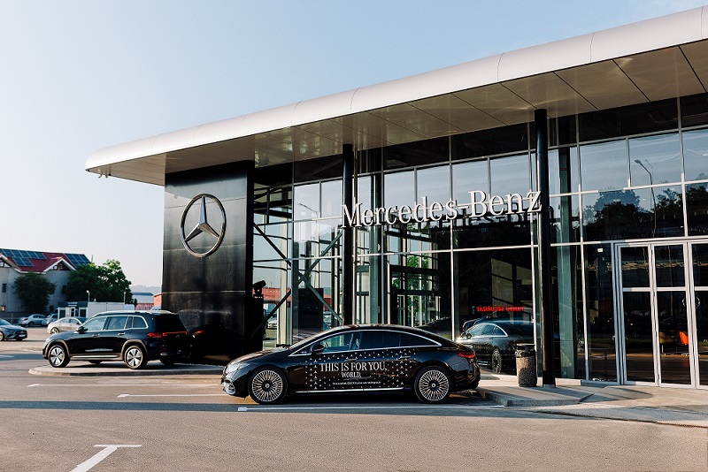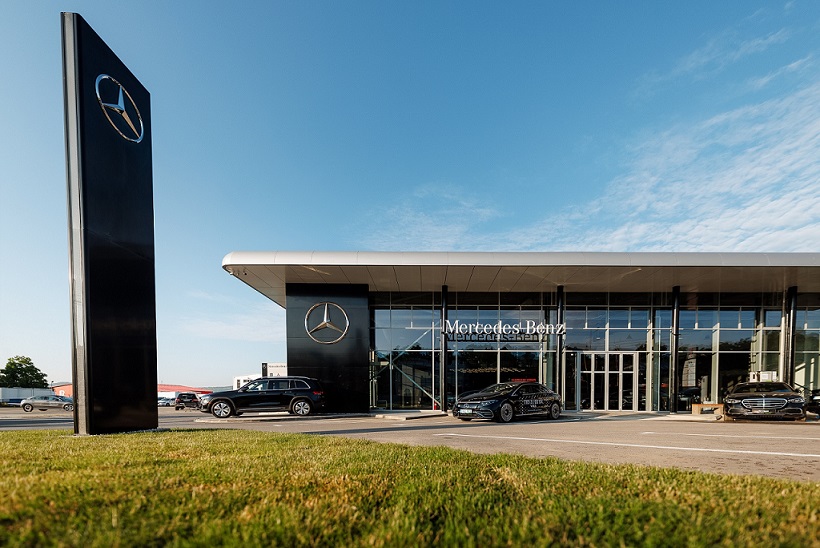 Noul showroom Mercedes-Benz, redesenat integral pentru a încapsula noul concept de experiență și interacțiune, include o zonăde consultanță amenajată pentru a facilita discuțiile particulare cu fiecare client, cu ariisemi-publice sau complet private. Modelele Mercedes-Benzsunt expuse într-un nou mediu modern, fiecare având un spațiu dedicat de 34 metri pătrați, completat de un ecran media principal. Predarea autovehiculelor are loc într-o zonă asistatăde elemente media pentru modelele noi, rulate sau pentru test drive. Showroom-ul este completat de un spațiu alocat prezentării accesoriilor tehnice, jantelor și pieselor, cu gondole și vitrine.