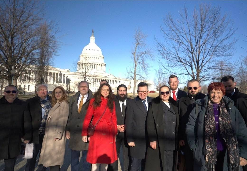 @ Deputații AUR de Iași, Emanuela Dascălu și Silviu Gurlui au fost miercuri, 21 ianuarie 2026, părtași la o scenă grotescă de încălcare simbolică a suveranității Groelandei @ Emanuela Dascălu și Silviu Gurlui se declară suveraniști, dar nu au ezitat să asiste, nepăsători, la batjocorirea, cel puțin simbolică, a suveranității unui alt stat independent @ Întreaga mascaradă, care l-a avut în prim-plan pe George Simion, președintele AUR, a avut loc la un eveniment organizat de congresmani republicani pentru a sărbători primul an din cel de-al doilea mandat al lui Donald Trump.