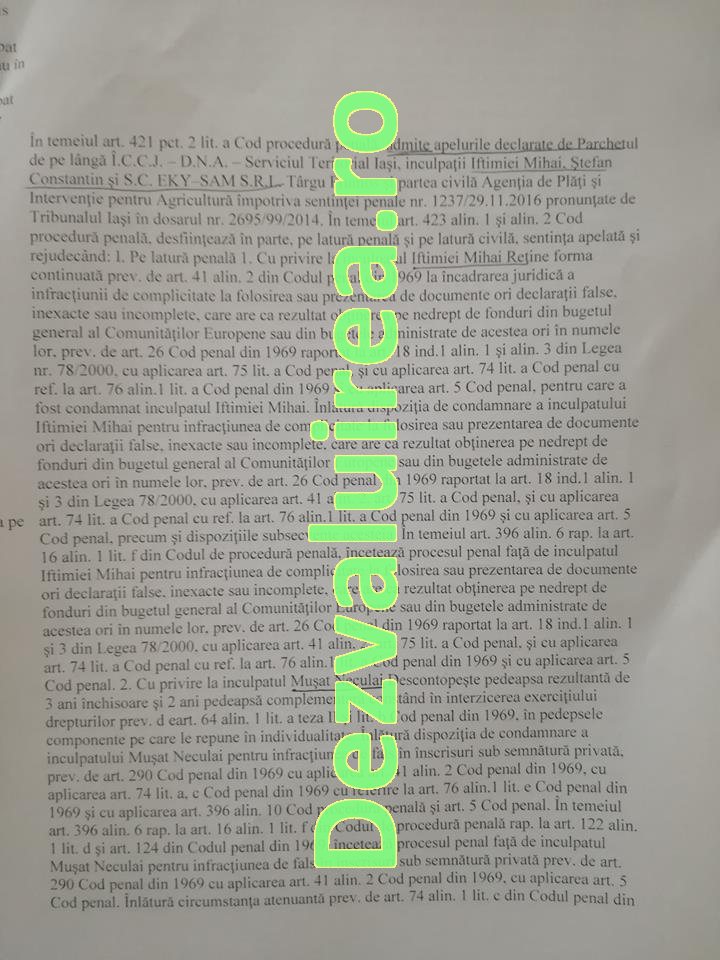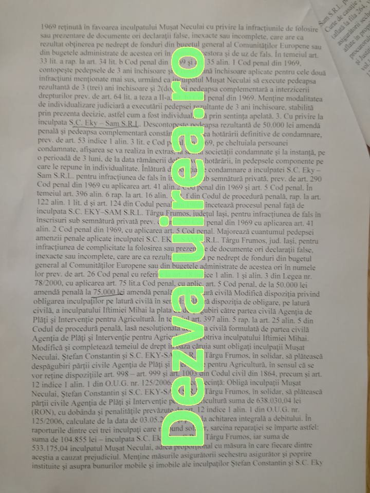 @ Magistratii Curtii de Apel Iasi au pronuntat aseara sentinta definitiva in dosarul de coruptie in care firma Eky Sam patronata de Ioan Echimov a fost judecata intr-o frauda cu fonduri europene @ Au mai fost condamnati fostul primar al Primariei Ion Neculce dar si fostul viceprimar care vor trebui sa plateasca prejudiciul de peste 6 milliarde lei alaturi de firma Eky Sam @ Dezvaluirea. ro prezinta in exclusivitate, in fotocopie decizia luata aseara de magistrati