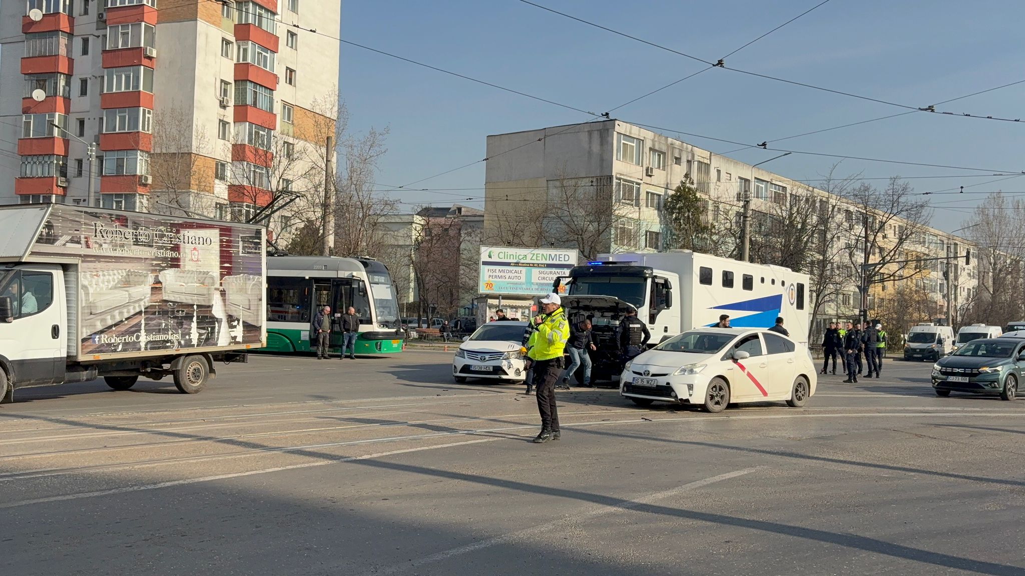 @Un accident rutier violent a avut loc acum câteva minute în intersecția Țuțora@ Au fost implicate două autoturisme marca Toyota și o autospecială din cadrul Administrației Naționale a Penitenciarelor@
