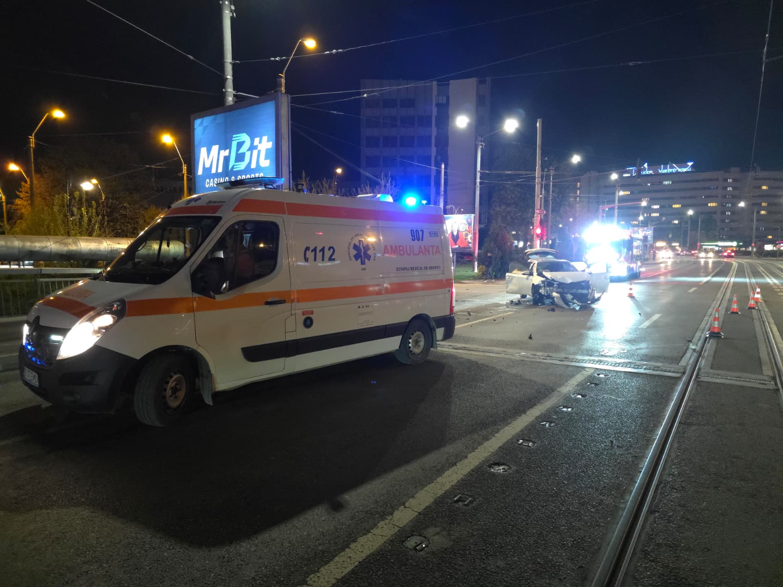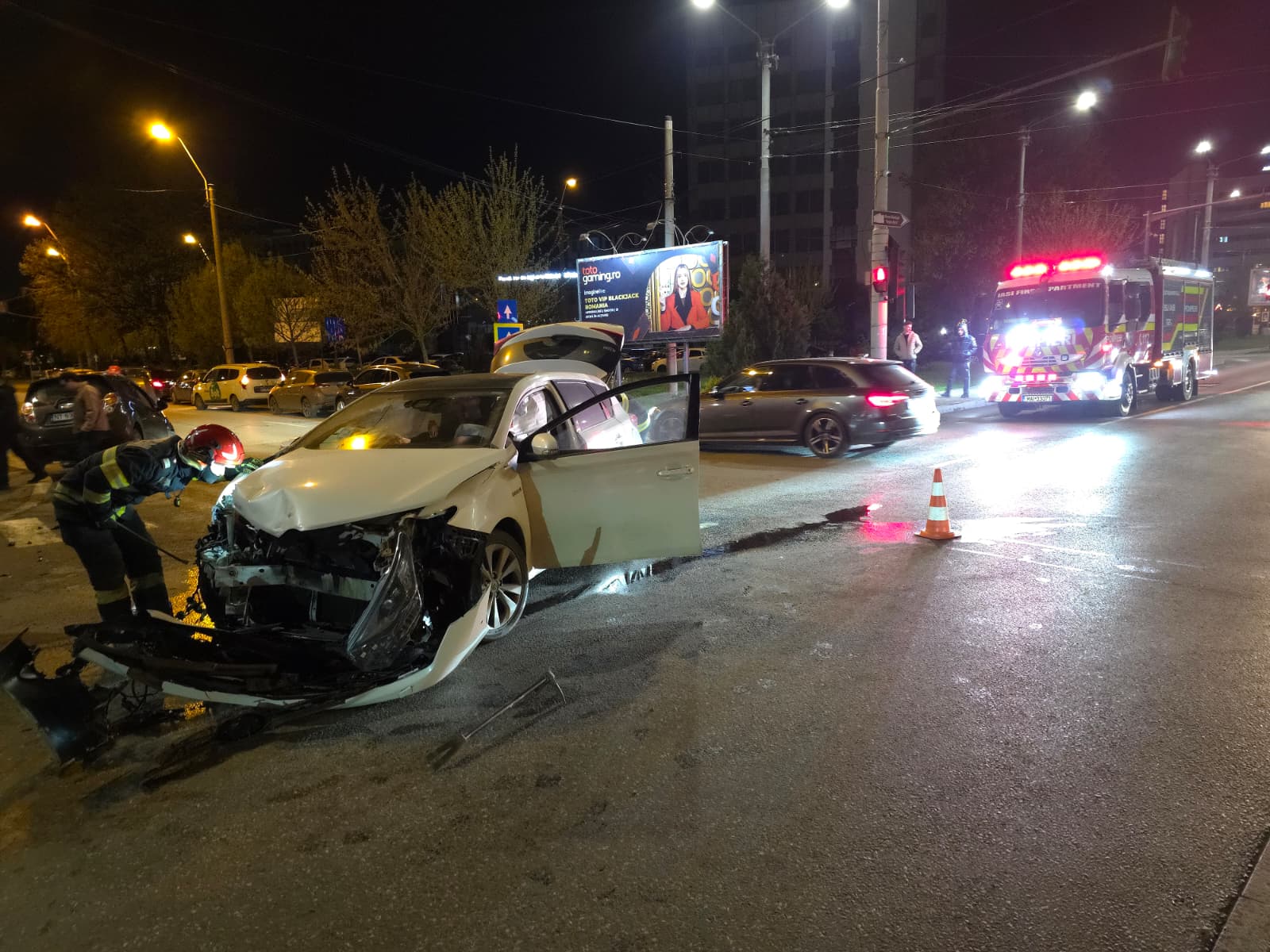 „În data de 18 aprilie 2026, în jurul orei 23:00, în urma unui apel primit prin Sistemul Național Unic pentru Apeluri de Urgență 112, în Dispeceratul Integrat ISU – SMURD – SAJ Iași a fost anunțat un accident rutier produs în municipiul Iași, pe bulevardul Tudor Vladimirescu, în care au fost implicate două autoturisme. Inițial, evenimentul a fost anunțat fără victime, existând însă posibile scurgeri de carburanți. La locul solicitării a fost direcționată o autospecială de stingere cu apă și spumă (ASAS) din cadrul Detașamentului 1 de Pompieri Iași, încadrată cu 5 pompieri militari, pentru asigurarea măsurilor specifice de prevenire și stingere a incendiilor. De asemenea, la fața locului s-a deplasat și un echipaj al Serviciului de Ambulanță Județean Iași.