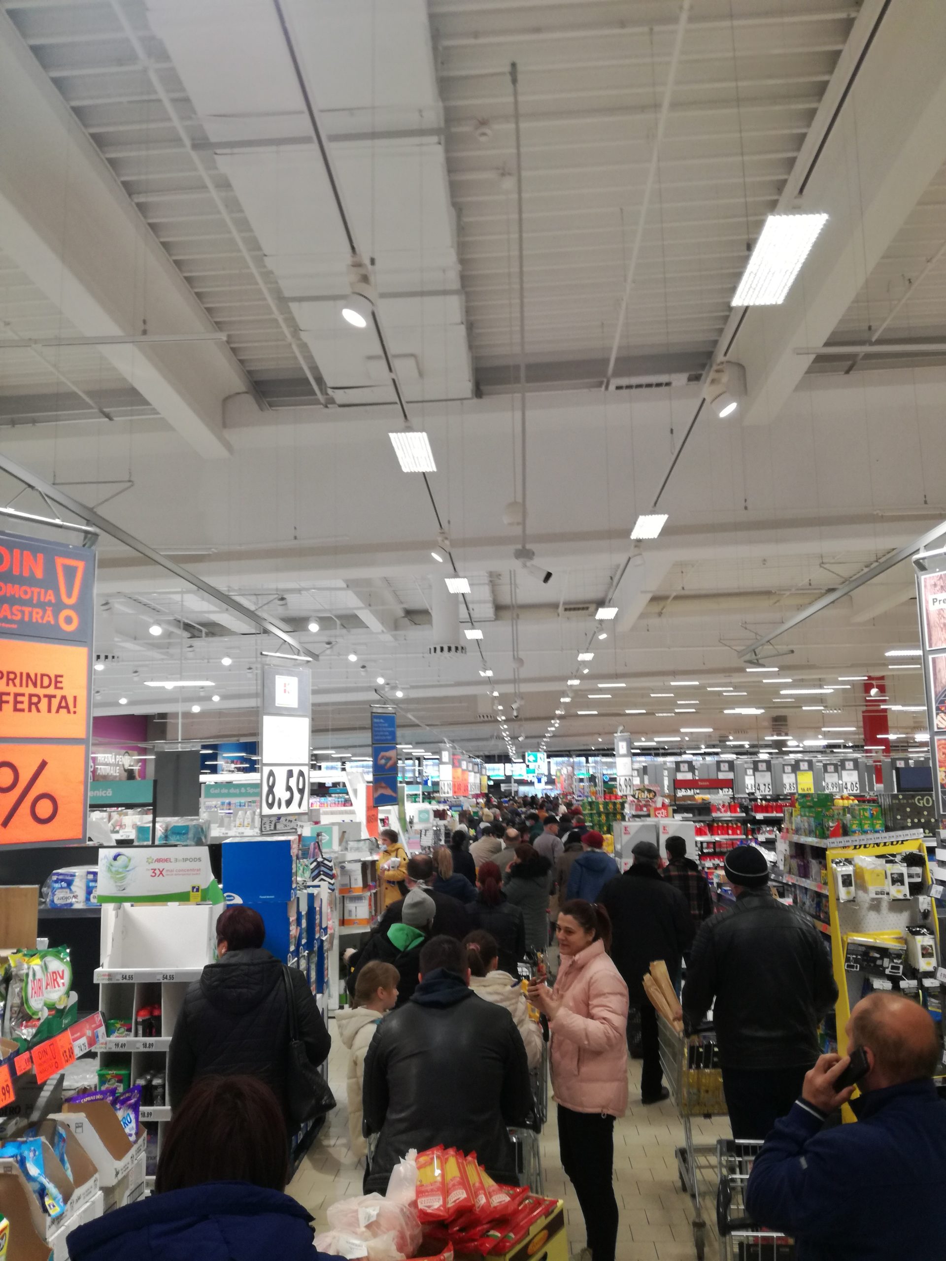 Un reportaj foto din ceea ce s-ar putea numi un ”Jurnal din perioada Pandemiei de Coronavirus” anul 2020 dupa Christos. Anuntul facut ieri de presedintele Klaus Iohannis privind instituirea starii de urgenta (situatie care poate implica limitarea unor drepturi precum acela de libera circulatie) a sporit panica. De aceea, dis de dimineata, iesenii au format cozi lungi de zeci de metri la intrarea in hipermarketuri si dupa ce au izbutit sa ajunga la rafturi, la casele de marcat. Fotografiile pe care vi le prezentam au fost realizate la Kaufland Pacurari astazi in jurul orei 9.00. De asemenea, altii au luat cu asalt pietele. Fotografiile pe care vi le prezentam au fost realizate in Piata Alexandru cel Bun in jurul orei 10.00. Dupa aceea, iesenii s-au baricadat in casa. Strazile din zona centrala sunt goale. Fotografiile pe care vi le prezentam au fost realizate pe strada Palat la ora 15.30.