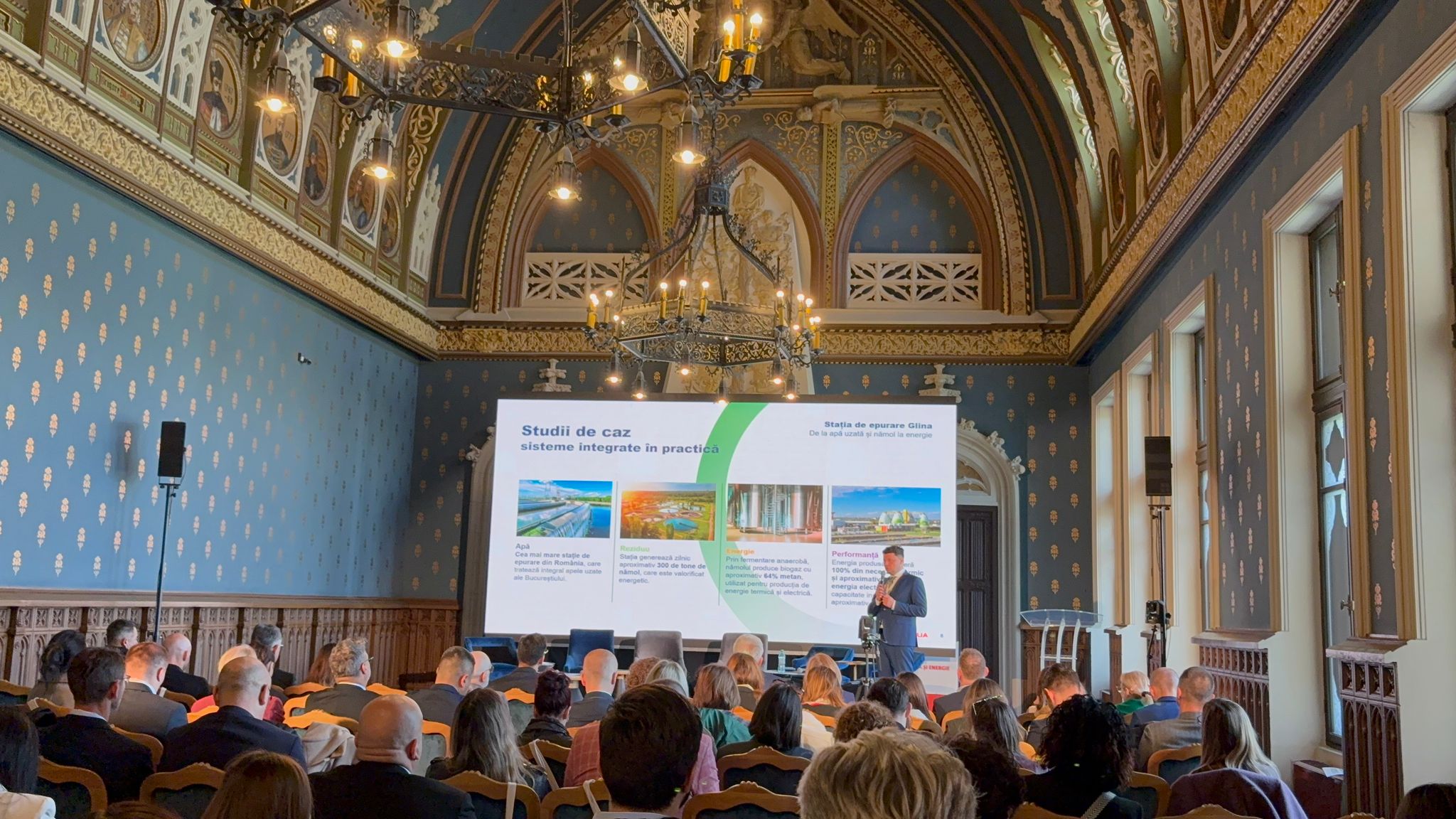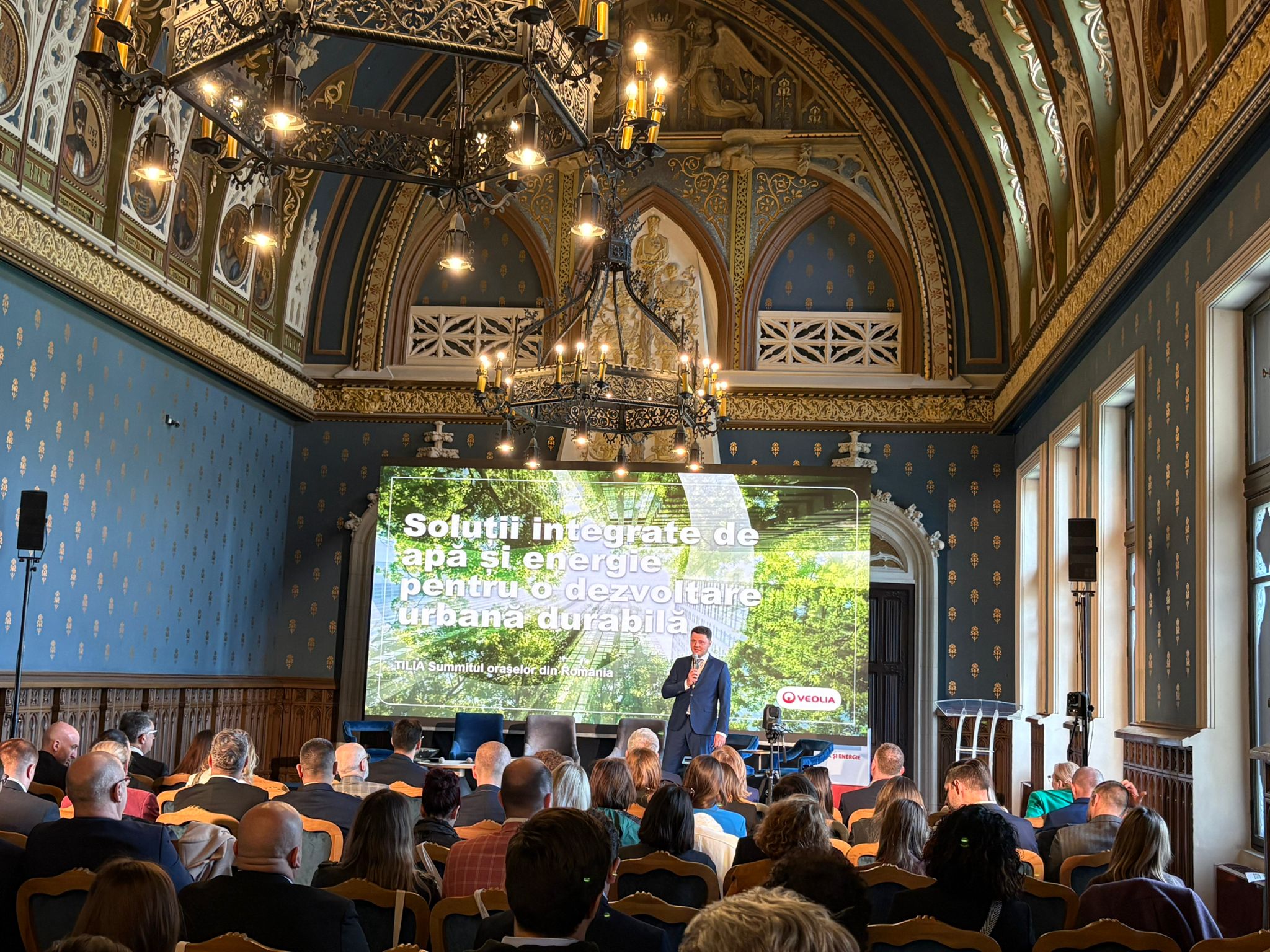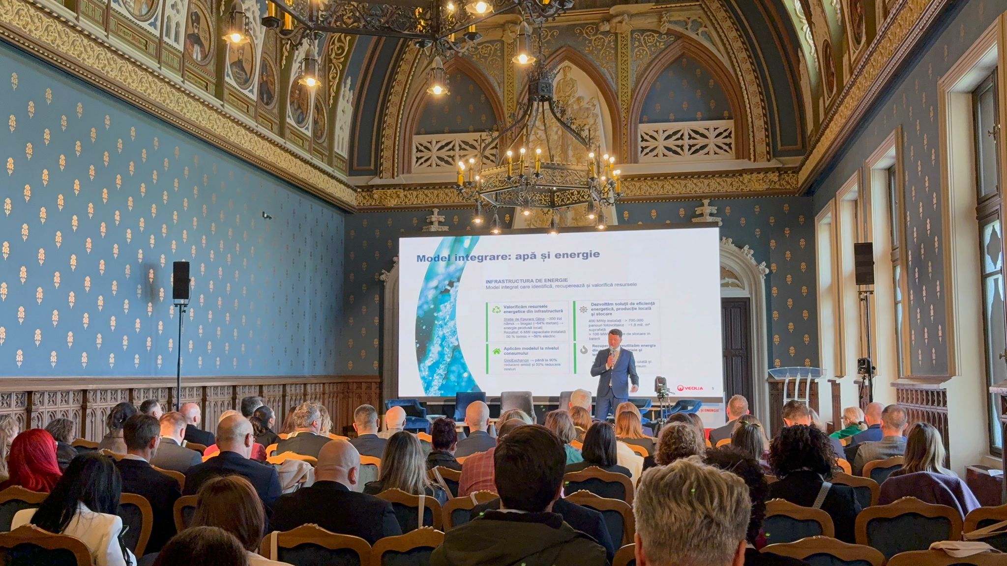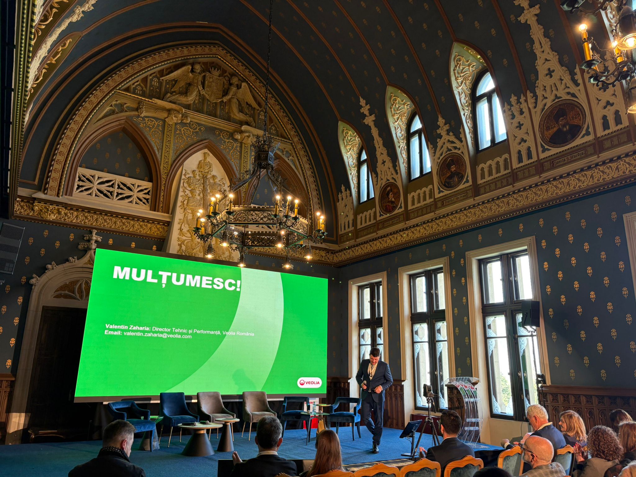 Valentin Zaharia, Director Tehnic și Performanță Veolia România, a abordat tema soluțiilor integrate de apă și energie, esențiale pentru o dezvoltare urbană durabilă.