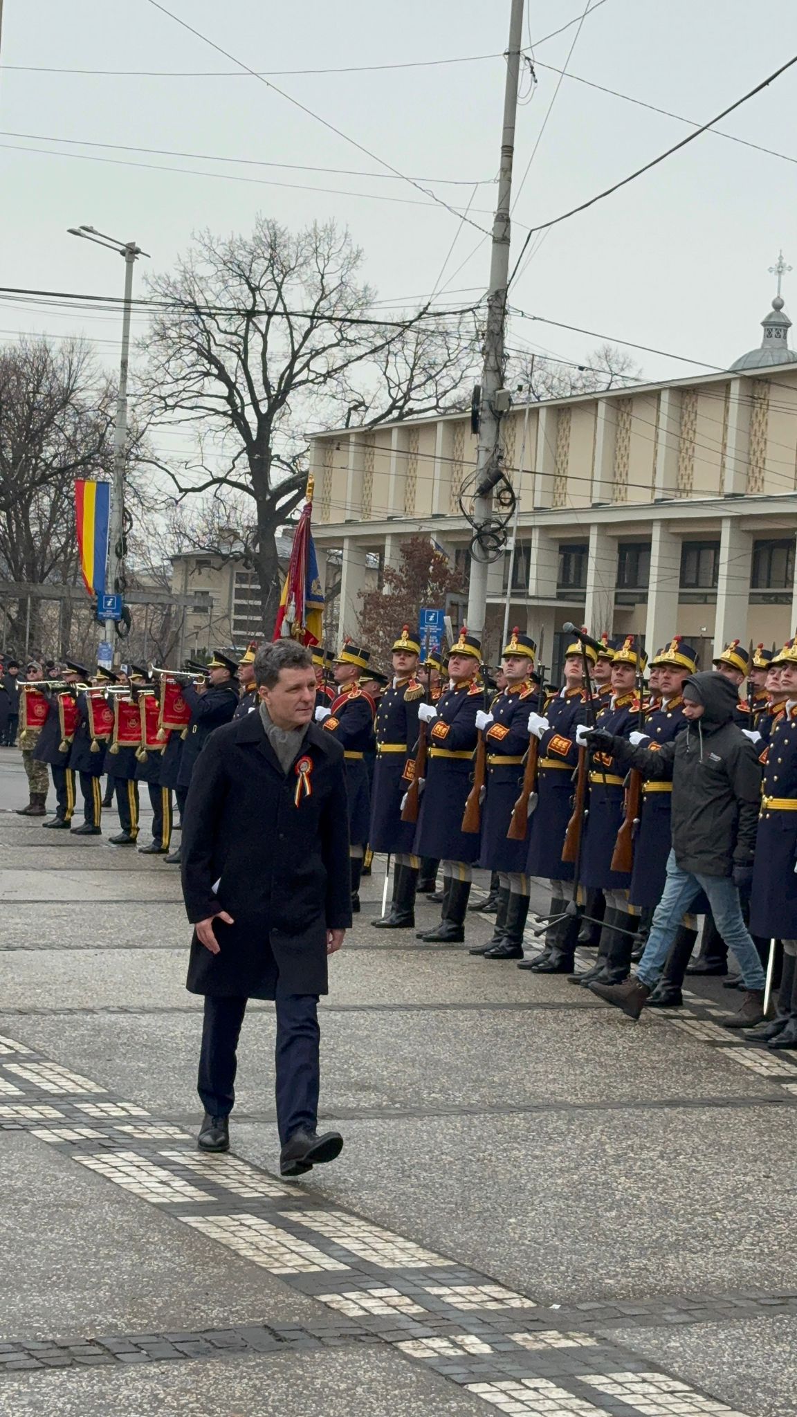 După încheierea ceremoniei militare, președintele Nicușor Dan s-a prins în Hora Unirii, apoi a făcut poze cu simpatizanții.