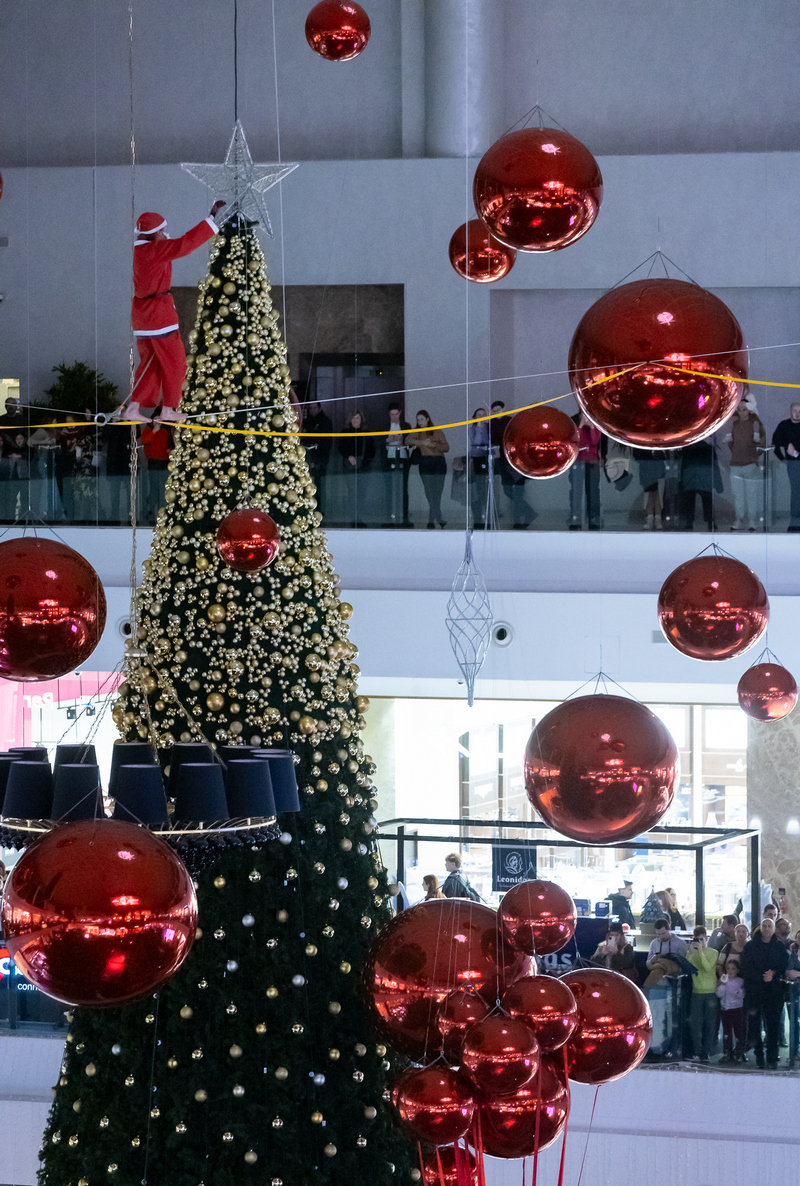În Palas, sezonul cadourilor a început sâmbătă, odată cu aprinderea decorațiunilor de Crăciun, eveniment care a atras mii de ieșeni. Unul dintre invitații speciali a fost un „Moș Crăciun acrobat”, care a traversat la înălțime Atriumul Palas, iar entuziasmul celor prezenți a atins cote maxime. După momentul plin de adrenalină, simpaticul bătrânel s-a alăturat celor prezenți în Atrium și împreună cu aceștia au aprins decorațiunile de Crăciun, pe acordurile concertului susținut de Filarmonica de Stat „Moldova” Iași.