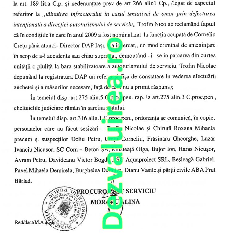 Sa mai precizam ca Alina Moraru, nu a facut decat sa inchida un dosar cu fapte care probabil s-ar fi prescris curand si peste care au lasat sa se astearna praful procurori care au condus sau au functionat la DNA Iasi din 2010 si pana in prezent Sorin Calin, Emilian Eva, Bogdan Munteanu etc.
