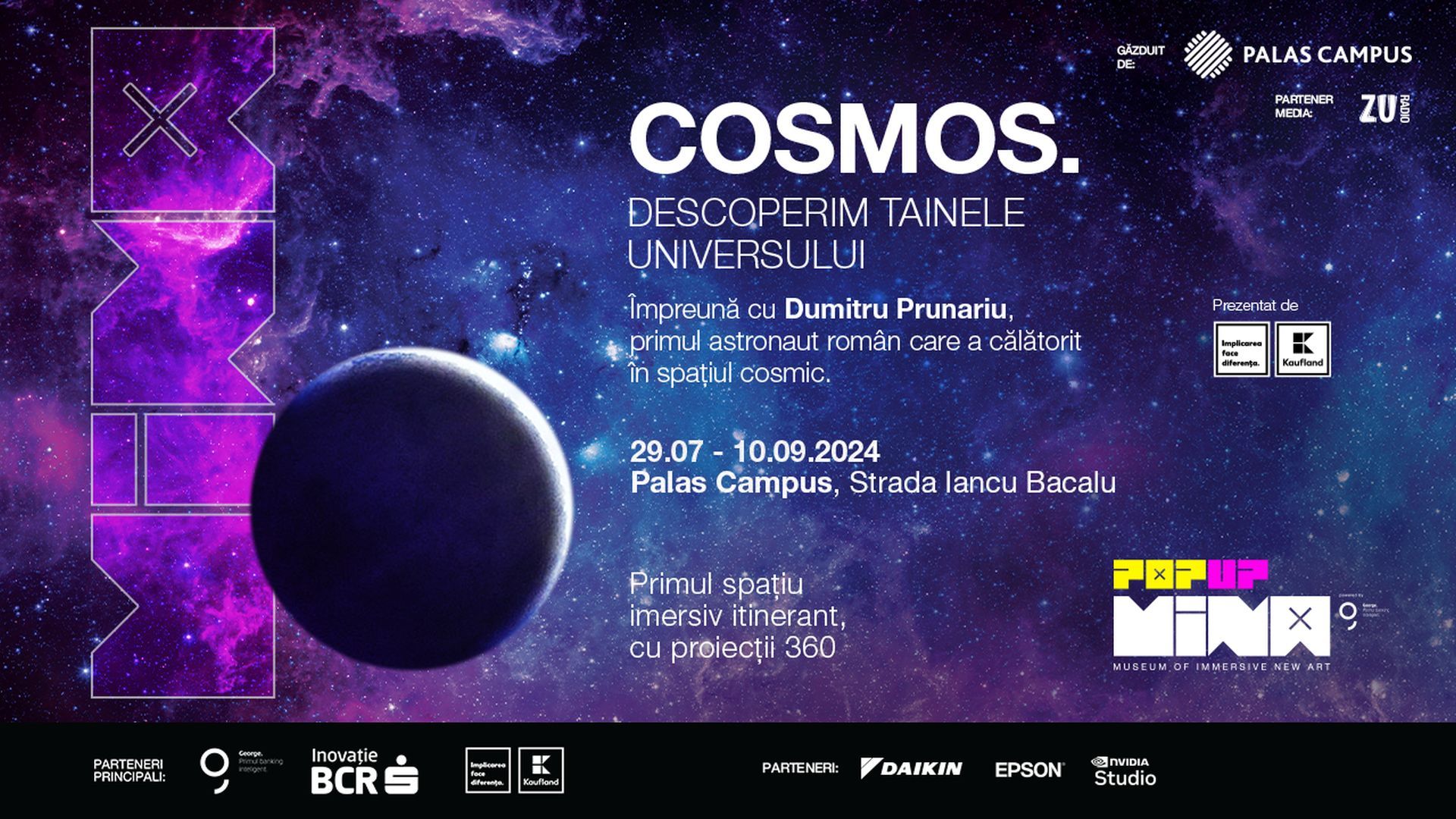 Spectacolul imersiv „ COSMOS – Descoperim tainele universului” va fi prezentat, de pe 29 iulie pâna pe 10 septembrie, în cadrul MINA Pop Up din Palas Campus, ediția itinerantă a muzeului imersiv al noilor arte, MINA. Acest spectacol oferă o incursiune captivantă și educativă în minunile cosmosului, cu un focus amplu asupra Sistemului Solar și a cuceririlor umane în explorarea spațiului.