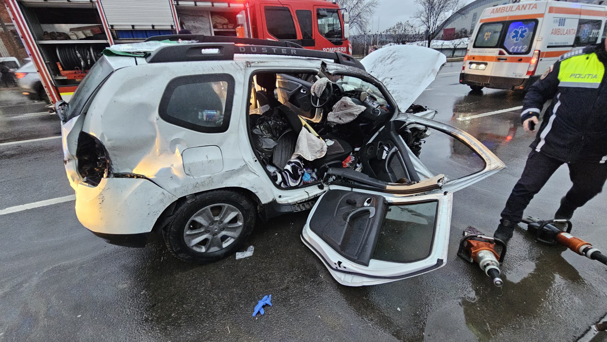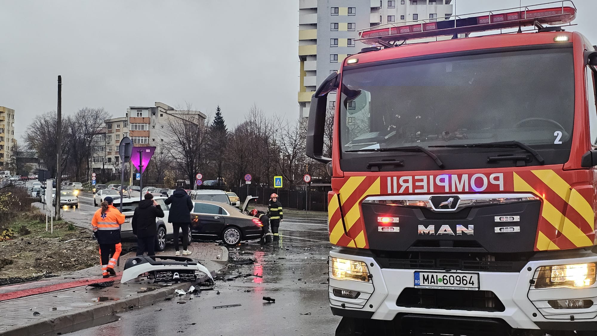 Echipaje din cadrul Detașamentului 2 de Pompieri Iași au intervenit la un accident rutier în care au fost implicate trei autoturisme și patru persoane. La fața locului s-au deplasat două autospeciale de stingere (ASAS) cu 10 pompieri, două ambulanțe SAJ tip B și o ambulanță SAJ cu medic. În urma evaluării, o victimă a fost găsită inconștientă și încarcerată. Pompierii au acționat pentru extragerea rapidă și în siguranță a acesteia, ulterior fiind predată echipajului medical cu medic și transportată la spital pentru îngrijiri și investigații de specialitate.Celelalte trei victime au fost evaluate de echipajele medicale la fața locului și au refuzat transportul la spital.Intervenția a fost gestionată fără alte probleme suplimentare”, a transmis ISU Iași.