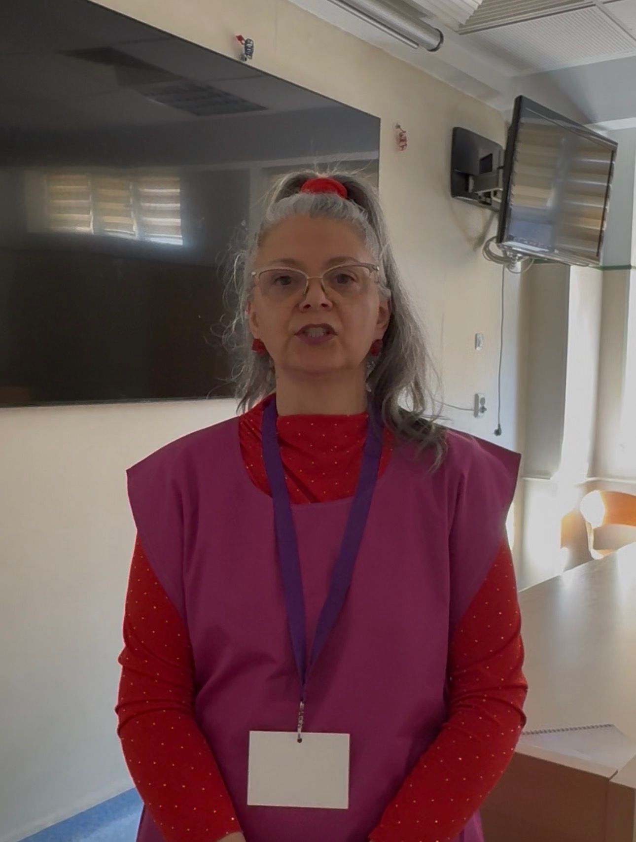 „Sunt jurnalist de profesie, lucrez în București și am venit în Iași pentru o dramă personală, mi-a decedat mama, iar exact în perioada aceea mi-am descoperit un cancer endometrial în stadiu avansat. Am fost operată, am făcut chimioterapie și radioterapie și am fost extrem de încântată de modul în care am fost tratată. Astfel, am simțit nevoia să dau și ceva înapoi, pentru că acest spital a făcut foarte multe pentru mine. De aceea, m-am înscris în acest program de voluntariat. Mă bucur nu doar să pot ghida oamenii pe holuri, ci și să le pot spune o vorbă bună. Cancerul meu a fost dificil, de gradul III, din fericire fără metastaze, dar oamenii sunt foarte speriați, iar eu sunt aici să le spun că nu este un capăt de drum, ci un început, că sunt medici foarte buni, că au venit unde trebuie și că au șanse de vindecare. Le ridic puțin moralul, pentru că diagnosticul sperie pe toată lumea și cred că asta fac și colegele mele. Contează enorm să vadă persoane care au fost bolnave de cancer și s-au vindecat, iar pentru mine a contat. Am fost colegă de salon cu niște femei absolut extraordinare, care au fost un model pentru mine”, a declarat Anca Grădinariu.