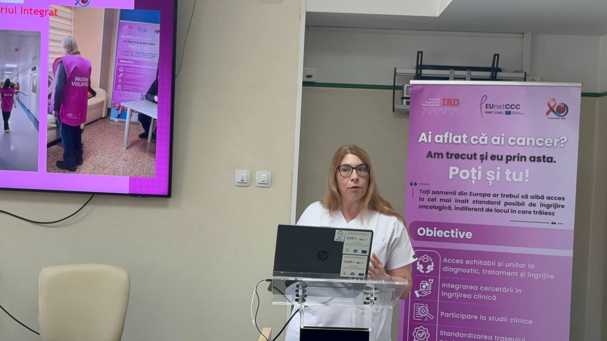 @Elena Irimia, Anca Grădinaru și Mihaela Gârlea au luptat cu cancerul și l-au învins, iar acum au devenit voluntari la IRO Iași și le oferă pacienților nou diagnosticați orientare practică în cadrul unității medicale, îi încurajează și le oferă încrederea că viața continuă și după primirea unui diagnostic oncologic@ Asemenea lor, încă 9 femei care au reușit să învingă lupta cu cancerul au devenit voluntare în sprijinul pacienților nou diagnosticați@