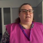 „Acum 12 ani m-am adresat Institutului Oncologic Iași în calitate de aparținător, împreună cu mama mea. A avut cancer ovarian. A luptat cât a putut și, din păcate, a plecat dintre noi. Timpul a trecut, iar peste câțiva ani am revenit eu, de această dată ca pacient. Se întâmpla acum 7 ani, când, la un control banal, am descoperit un cancer renal. Am urmat pașii clasici: CT, biopsie, intervenție chirurgicală. Din fericire, nu a fost nevoie de chimioterapie, considerându-se că intervenția chirurgicală a fost suficientă. Nu a fost ușor să primesc vestea, dar faptul că am avut familia și prietenii alături m-a ajutat să merg mai departe. Momentul cel mai critic pentru un pacient este atunci când află diagnosticul, când realizează că nu există îndoială: este cancer. Aveam45 de ani când am aflat. Eram un om activ, în câmpul muncii, plecată de la serviciu pentru o simplă ecografie, cu gândul că mă voi întoarce imediat la muncă. Nu am avut niciun simptom care să-mi dea de bănuit, doar o banală durere de spate, pe care am pus-o pe seama kilogramelor în plus. În momentul în care am ieșit de la ecografie, mi s-a spus clar că nu este o tumoră obișnuită, ci cancer. M-am operat pe 8 martie 2019. Acea zi va rămâne pentru mine ziua în care am căpătat o nouă viață, chiar dacă este o viață fără un rinichi. Întotdeauna mi-am dorit să ajut oamenii; sunt de profesie asistent social și medical. Când s-a oferit această oportunitate la institut, am spus „da”. Acum 2 ani am mai avut o operație, care a dus la extirparea totală a tiroidei, din nou, cancer. Nu știu dacă lupta cu cancerul s-a încheiat. M-am gândit că, dacă eu am avut sprijin și am văzut cât de mult ajută, pot să-i ajut și eu, la rândul meu, pe alții. La noi trebuie să luptăm cu ideea că acest diagnostic nu înseamnă moarte. Noi încercăm să le arătăm pacienților că există viață după cancer”, a declarat Elena Irimia.