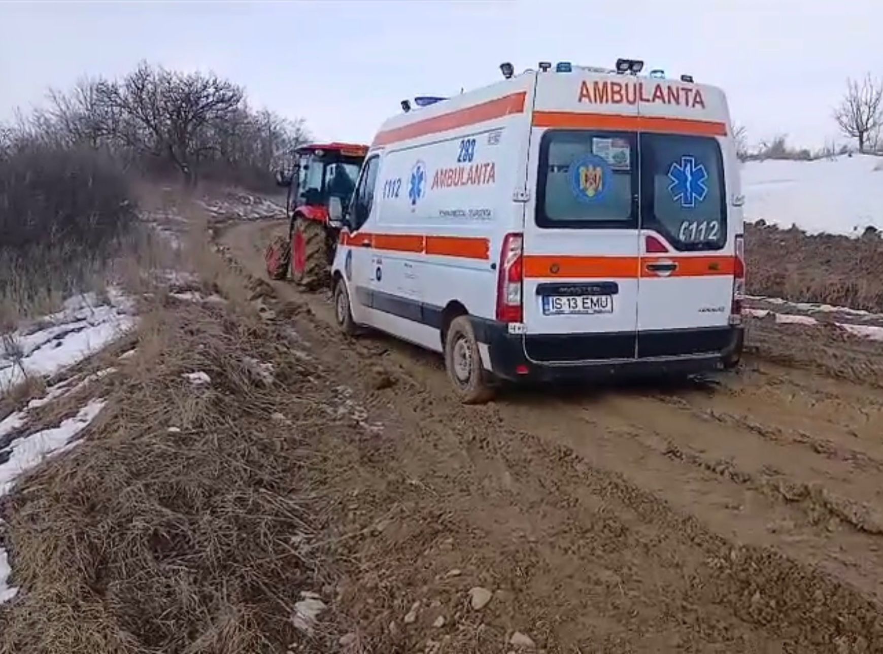 @Un pacient în vârstă de 52 de ani, din localitatea Bojila, comuna Mădârjac, cu grave afecțiuni cardiovasculare, a murit luni, 23 februarie 2026, după ce una dintre ambulanțele trimise să-l salveze s-a împotmolit în nămol, pe drumul DJ 282E@ Ambulanța a fost tractată de un tractor, dar, din păcate, s-a ajuns la intervenție prea târziu, pacientul fiind deja mort@
